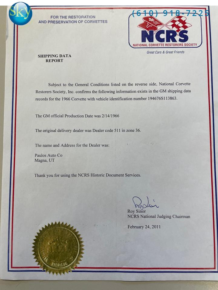 49K MILES!! 1966 CHEVROLET CORVETTE STINGRAY CONVERTIBLE, NASSAU BLUE (1 OF 6,100 IN THIS COLOR FOR '66!), WHITE W/ BLUE VINYL INTERIOR, WHITE SOFT TOP, 4-SPEED POSITRACTION MANUAL TRANSMISSION, UPGRADED POWER STEERING AND POWER BRAKES JUST INSTALLED!! 3.36:1 REAR AXLE, 327CII L79 350 HP V8 ENGINE, ROCHESTER Q-JET, SPECIAL CAM, ST. LOUIS FINAL ASSEMBLY PLANT, MARCH 3, 1966 BODY TIME BUILD CODE, A. O. SMITH BODY, COMPLETE WITH NCRS (NATIONAL CORVETTE RESTORATION SOCIETY) AUTHENTICITY LETTER, NICE CAR!!